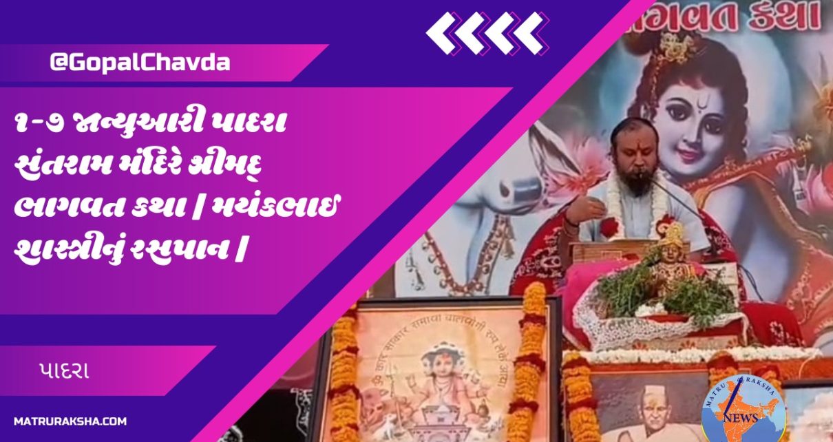 પાદરા સંતરામ મંદિર ખાતે શ્રીમદ્ ભાગવત કથા પારાયણ, પૂ મોહનદાસ મહારાજ ની પ્રેરણાથી રસીકભાઈ ગાંધી પરિવારના સંકલ્પ થી મયંક ભાઈ શાસ્ત્રી દ્વારા કથાનું રસપાન