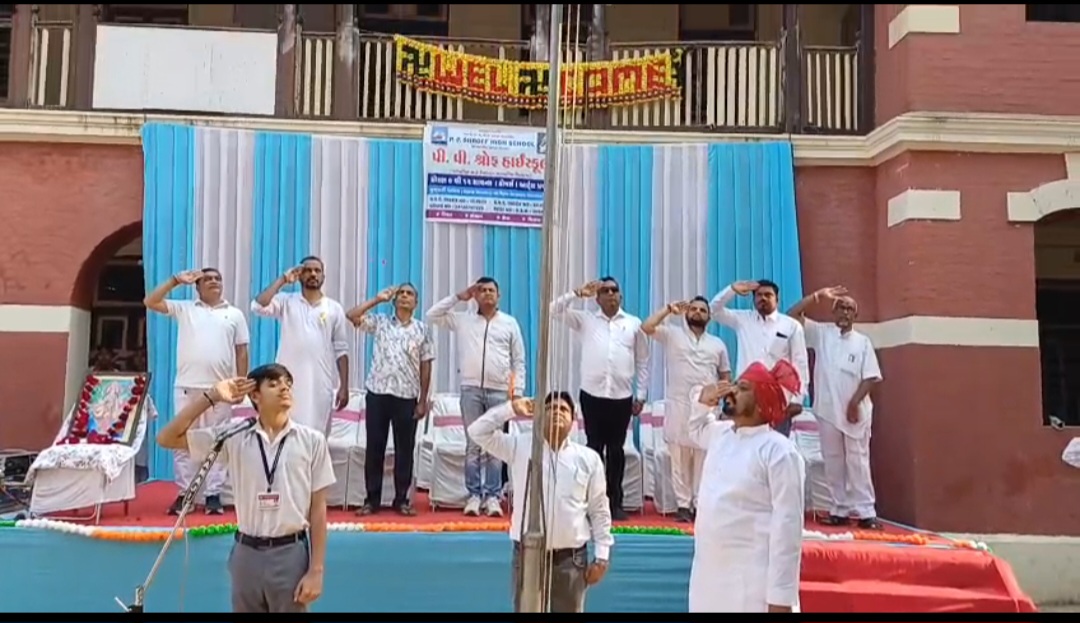 ધ્વજવંદન કાર્યક્રમ યોજાયો હતો, જેમાં પાલિકા ના સદસ્યો તેમજ વિદ્યાથીઓ અને શિક્ષકો ઉપસ્થિત રહ્યા હતા
