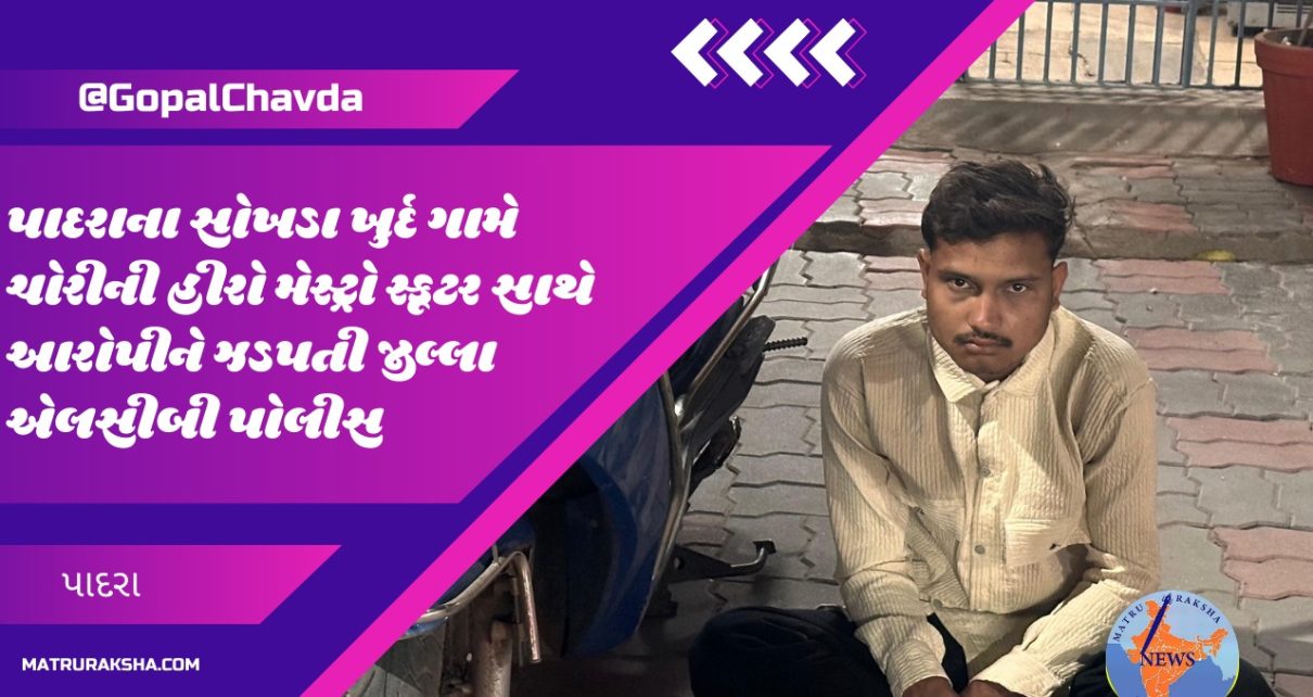 પાદરાના સોખડા ખુર્દ ગામે ચોરીની હીરો મેસ્ટ્રો સ્કૂટર સાથે આરોપીને ઝડપતી જીલ્લા એલસીબી પોલીસ પાદરાના સોખડા ખુર્દ ગામે ચોરીની હીરો મેસ્ટ્રો સ્કૂટર સાથે આરોપીને ઝડપતી જીલ્લા એલસીબી પોલીસ પાદરા ગોવિંદપુરા ની ખાનગી હોસ્પિટલની સામેના પાર્કિંગ માંથી આરોપીએ સ્કૂકર ચોરી કરી પોતાની દહેજ સાસરીમાં જઈને પાછો ફરતા બાતમીના આધારે ઝડપી પાડ્યો હાલમાં ચોરી કરીને વાહનોની ઉઠાંતરી […]
